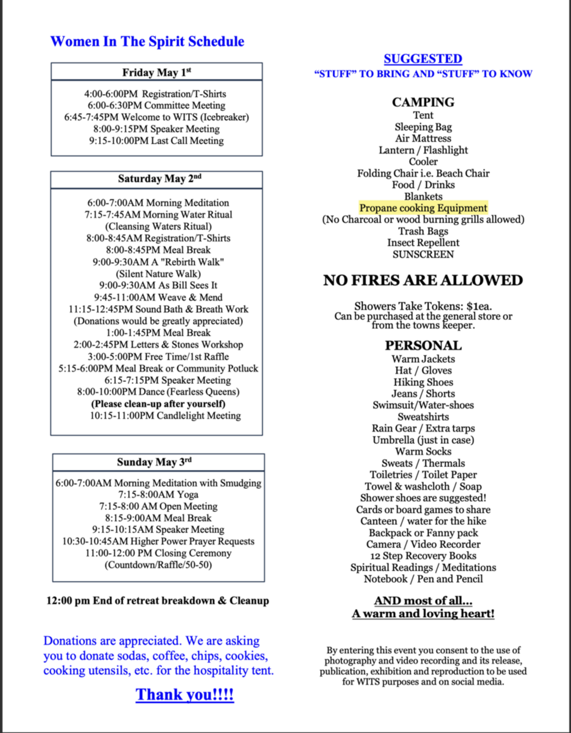 28th Annual Annual Women's 12 Step Recovery Camp Out